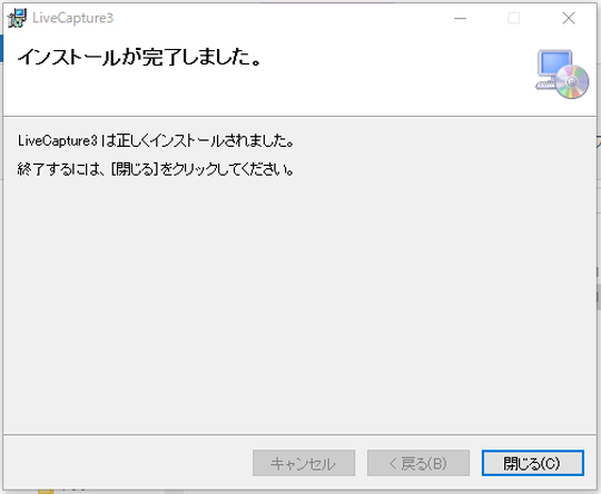 ダウンロードした「 LiveCapture3 」をパソコンへインストールします。